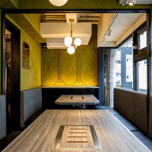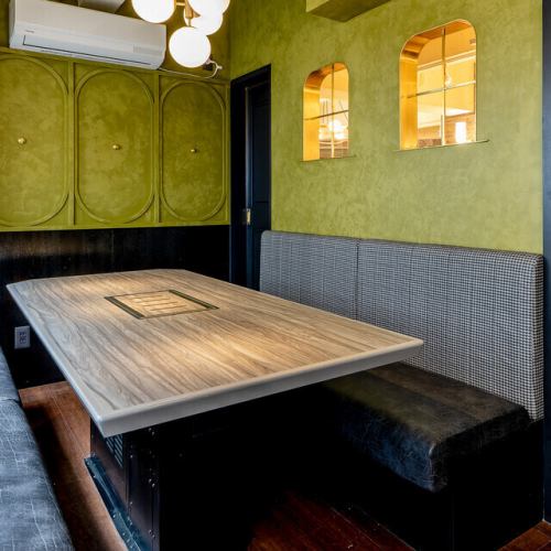 落ち着いたグリーンの壁と洗練されたインテリアが特徴で、心地よいプライベート空間を提供します。女子会、記念日や接待など様々なシーンでご利用いただけます。